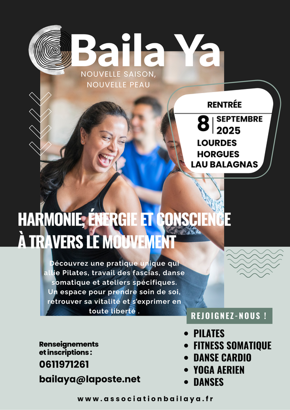 Si vous n’êtes pas élève de l’Association Baila ya, retenez votre place en envoyant votre bulletin d’inscription rempli, daté et signé : par courrier à Asso Baila Ya 16 rue de la Grave 65100 Lourdes, vous êtes élève Baila ya, en rendant votre bulletin d’inscription rempli, daté et signé à Angelina ou Maxcelia.